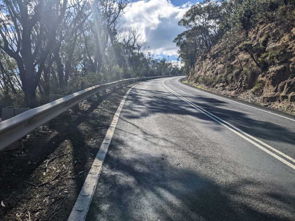 When I rode out of Lithgow, there was a steep climb, bringing me up a few hundred metres higher into the mountains. Despite the cold I’d soon removed my jacket as I warmed up from cycling.