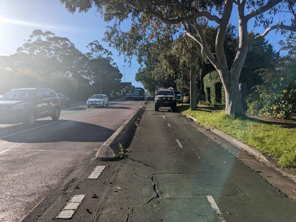 I did not enjoy cycling through Sydney. There was rarely a cycle lane or shoulder. If there was provision for cyclists it was usually a segregated path going in both directions on one side of the road. Since I was frequently turning onto different roads using those would have meant constantly stopping and long waits to cross the roads. This area was called “the hills” which made it pretty slow going.