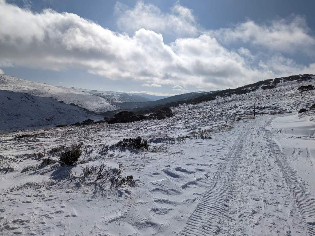 The road came to an end at Charlotte’s Pass. From there there’s a gravel trail (which is normally ridable) for 8km, to Rowson Pass, and then a walk to the summit of a couple kilometres. However, there was a sign stating that this summit walk was closed today as they were conducting maintenance work with helicopters.