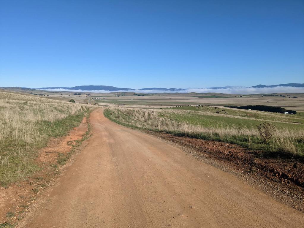 At the far side of the plateau the track was joined by the Hunt 1000 bikepacking route, which goes from Canberra to Melbourne. I planned to follow it for the next 700km. I began to descend down into a valley.