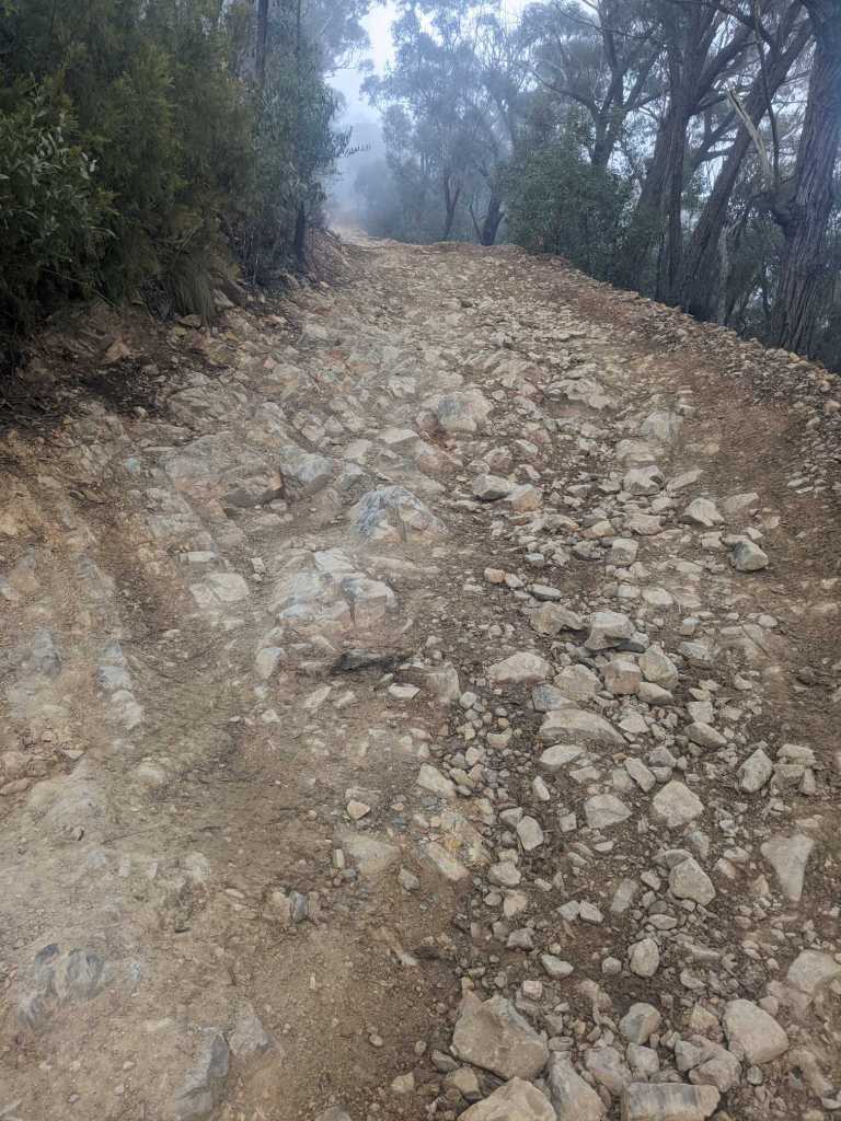 This second climb was steeper, gaining more than 600 metres of elevation in 3 kilometres. I was sweating profusely, pushing a short distance at a time before resting briefly to let my heart rate drop a little.