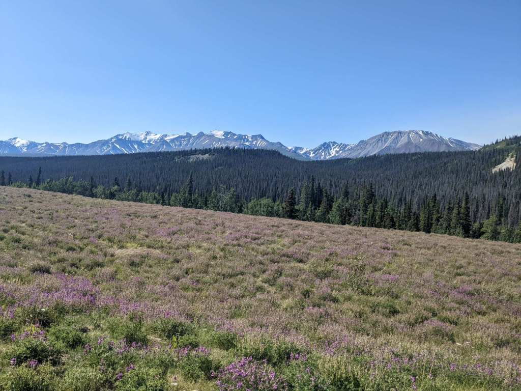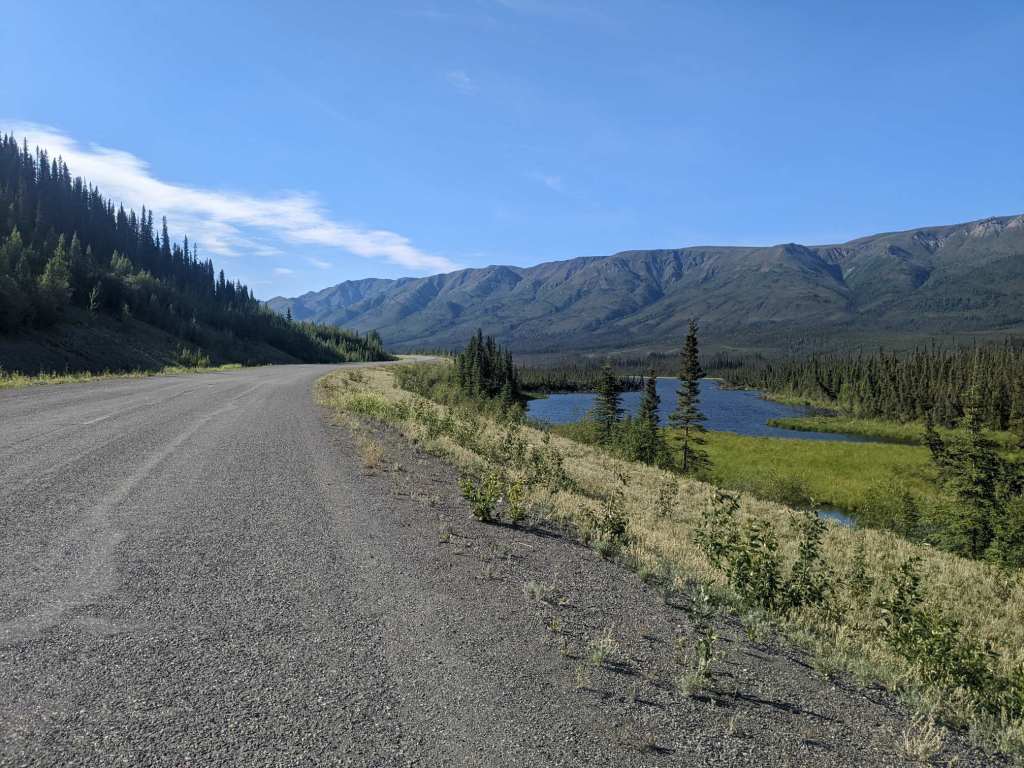 I continued on the Alaska-Canada Highway headed east. The road followed a series of rivers through forested mountains.