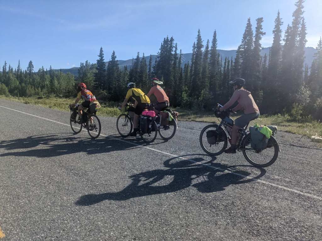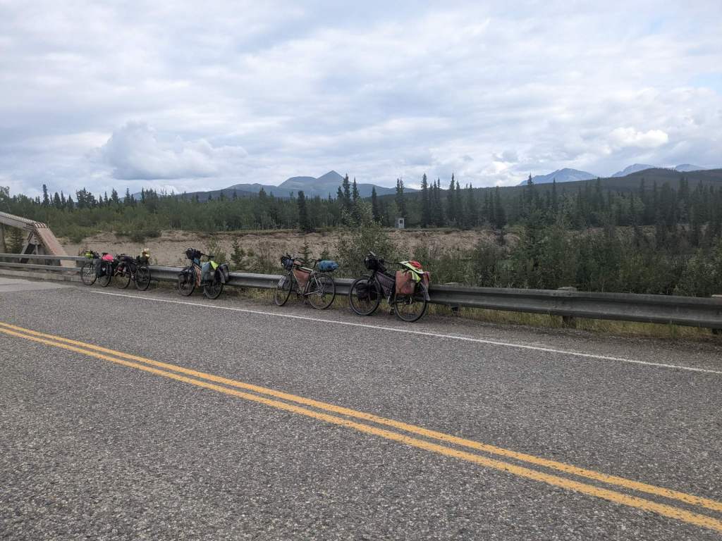 My legs felt much better the next morning but I was still tired. After a few hours I stopped for a break. While sitting at the side of the road, 4 cyclists went past, having just set off from a campsite a couple kilometres back. There were two Americans, Suzy and Allu, who’d started in Fairbanks. The other two, Andrew and Jenny, were also American. They’d been travelling for a couple years and most recently were coming from Prudhoe Bay.