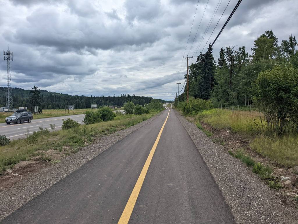 There was a supermarket in Smithers where I stocked up on food for the first time in about ten days. Suitably laden I continued on, riding for a few kilometres on a bike path.