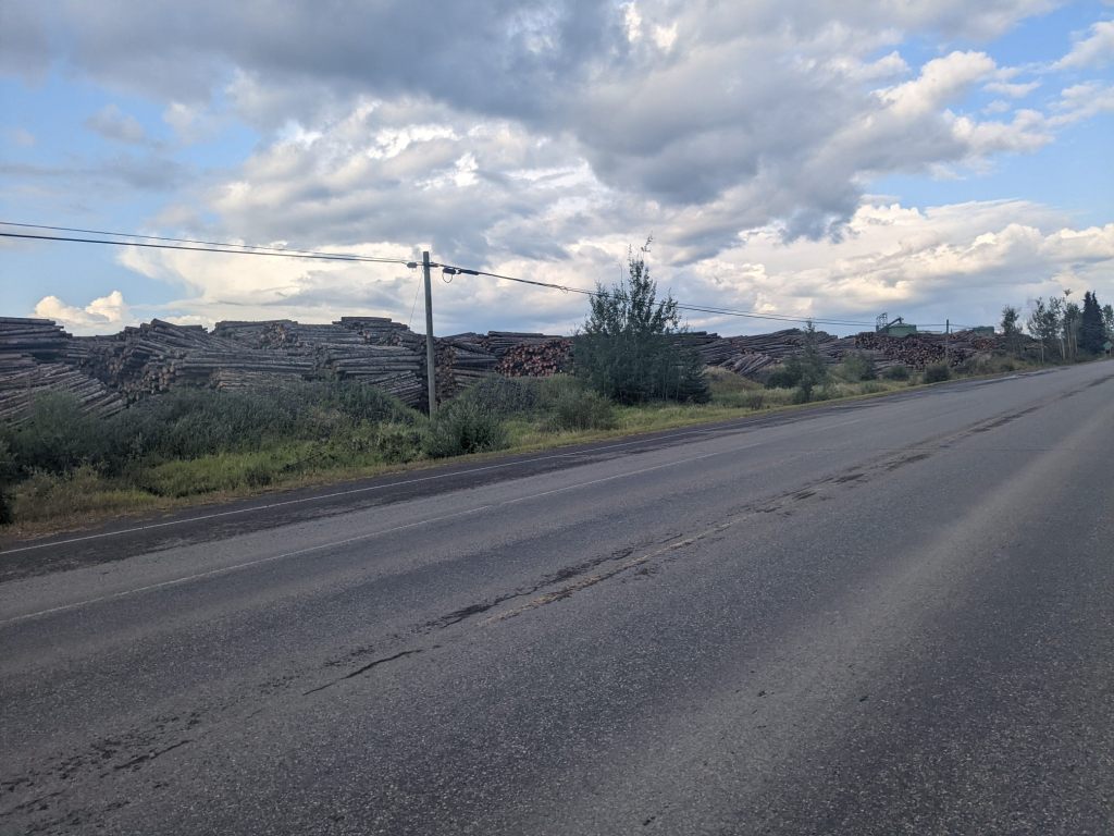 The next day the road had an unusually poor quality shoulder; unfortunately this was combined with rain and a high volume of trucks which left me little choice but to use the shoulder regardless. I let a significant amount of air out of my tyres to absorb the bumps. In the evening I passed a town with the biggest lumberyard I’ve ever seen – so that’s where the trucks were going!