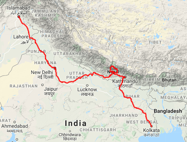 South Asia: Islamabad to Calcutta. Nov/Dec 2019. 3555 km.